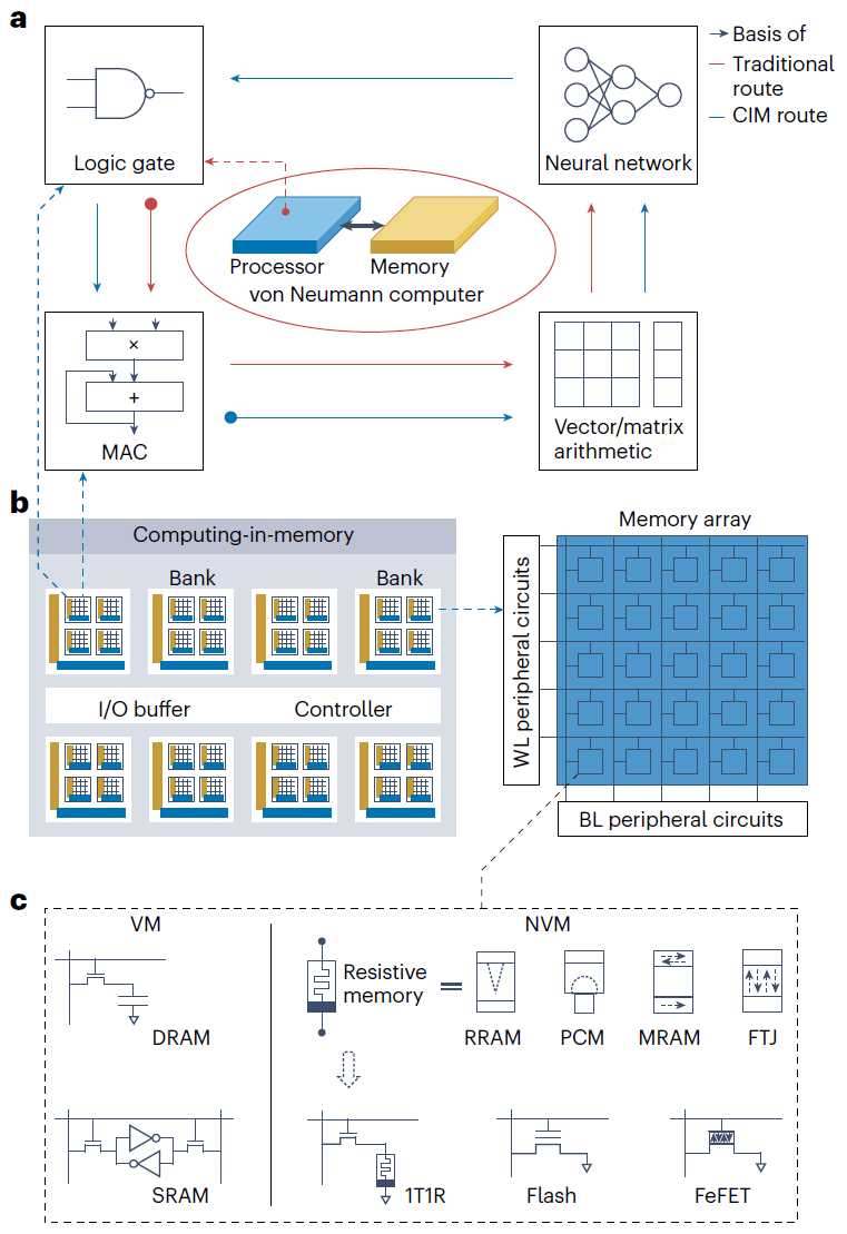 、人工智能研究院,av无码高精尖创新中心黄如院士-孙仲研究员课题组联合国内外专家学者,在《自然·电子》(Nature Electronics)在线发表了题为“存内计算技术全谱”(A full spectrum of computing-in-memory technologies)的综述论文。该论文提出存内计算技术全谱概念,对所有类型存内计算技术进行了原理性分类,从而为比较每种不同技术的性能提供了一个平台,同时有望启发新型的存内计算技术。