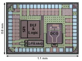 基于上述创新技术,课题组研制出一款面向毫米波调频雷达应用的24GHz调频连续波频率综合器芯片,该频率综合器采用全数字架构,辅以先进的自适应校准算法,刷新了当前同波段下调频带宽(3.2GHz@24GHz)和调频速率(320MHz/μs)的世界纪录,且调频过程中最小频率均方根误差仅7.35kHz,也是同类最优水平。