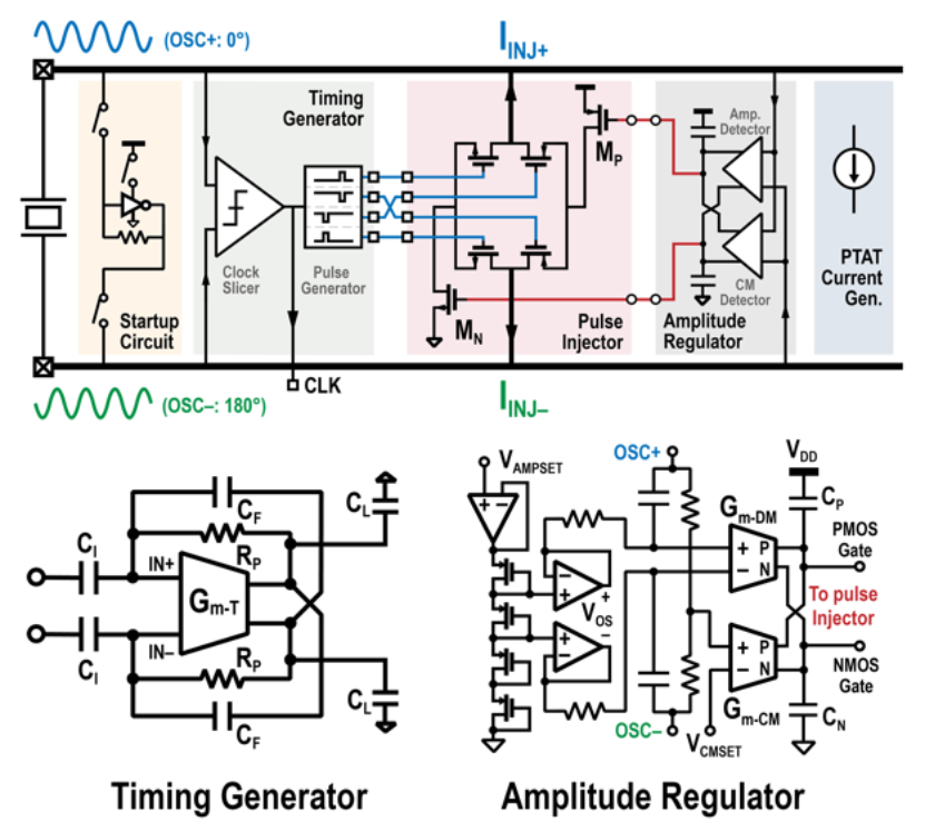 该工作以《一款22nm CMOS工艺下利用基于Gm-C的电流注入控制电路实现的0.954nW 32kHz晶体振荡器》(A 0.954nW 32kHz Crystal Oscillator in 22nm CMOS with Gm-C-Based Current Injection Control)为题,发表于今年ISSCC,文章的第一作者是av无码-av女优 博士后张奕涵,文章的通讯作者为叶乐教授。