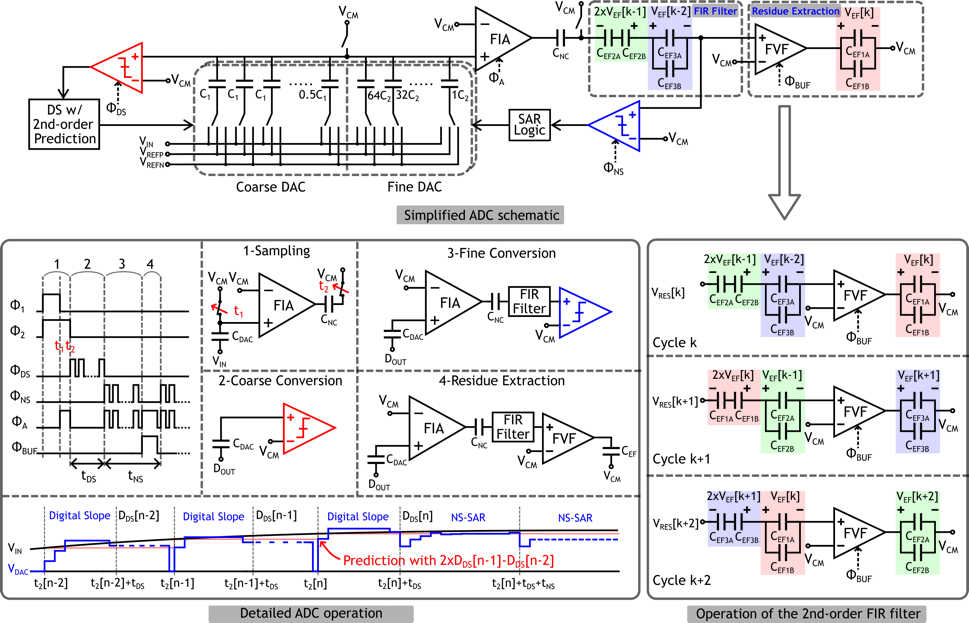 该工作以《A 150kHz-BW 15-ENOB Incremental Zoom ADC with Skipped Sampling and Single Buffer Embedded Noise-Shaping SAR Quantizer》为题,发表于今年ISSCC,文章的第一作者是av无码-av女优 博士生王宗楠,文章的通讯作者是唐希源研究员。