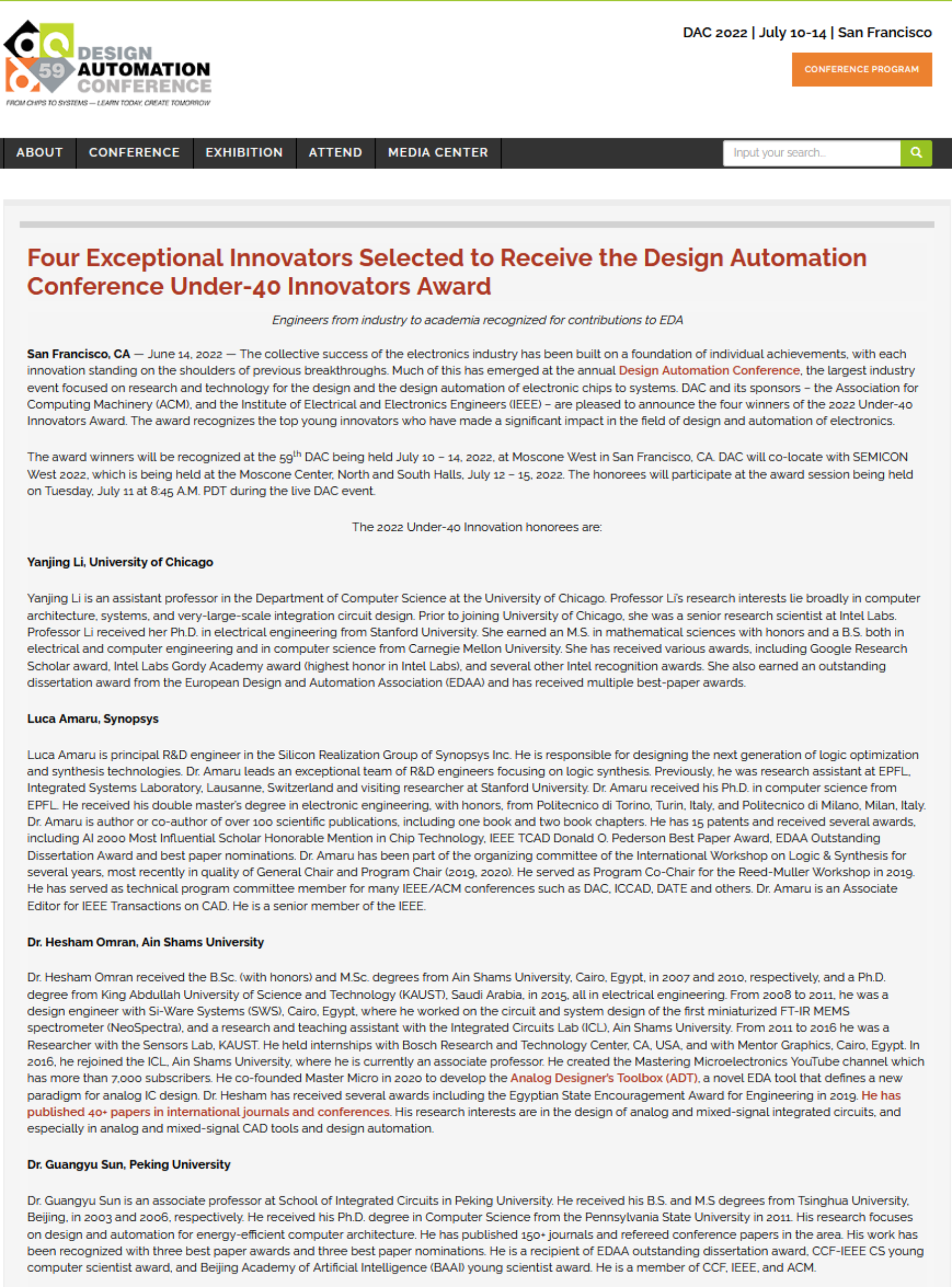 //www.dac.com/Media-Center/DAC-Press-Releases/-Four-Exceptional-Innovators-Selected-to-Receive-the-Design-Automation-Conference-Under-40-Innovators-Award