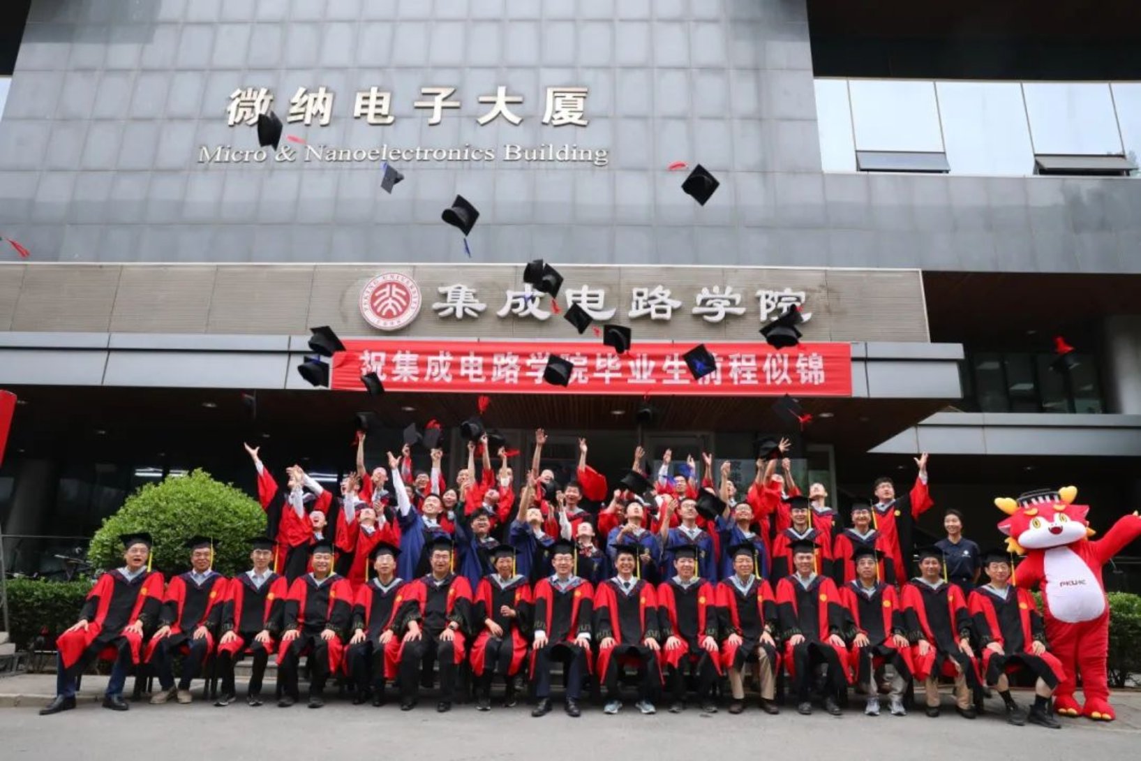毕业典礼的最后,王源和蔡一茂分别为到场的毕业生拨穗,授予学位。