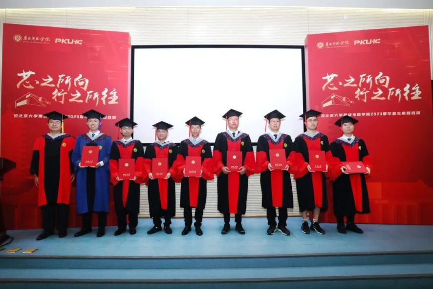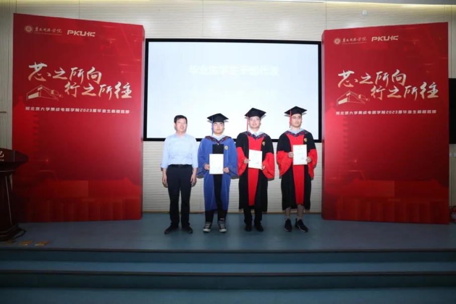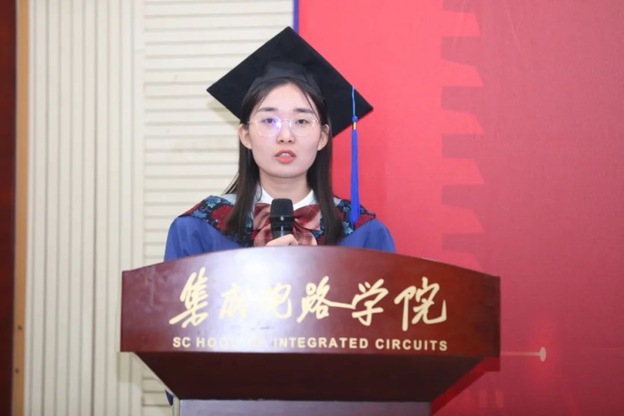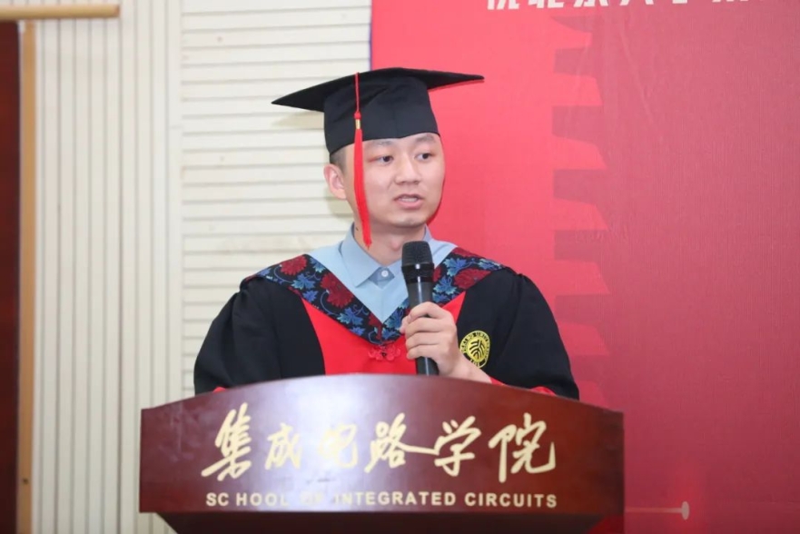博士毕业生代表周晔在发言中,回顾了自己过去在北大的学习生活,他代表毕业生承诺,将始终“芯”怀天下,时刻以服务于国家重大战略需求,奔向祖国各地发光发热。