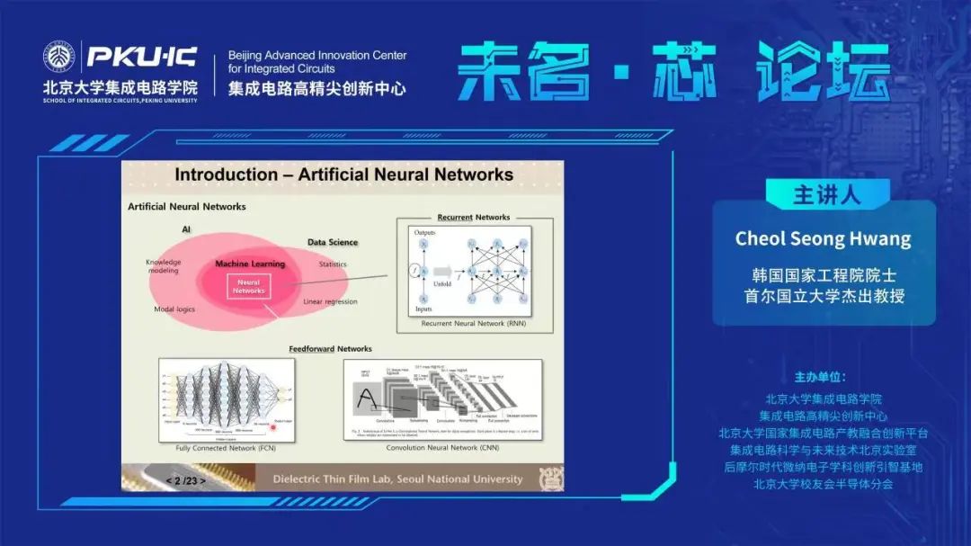 12月22日上午9时30分,由av无码-av女优 、av无码高精尖创新中心、av无码-av女优 国家av无码产教融合创新平台、av无码科学与未来技术北京实验室、后摩尔时代微纳电子学科创新引智基地、av无码-av女优 校友会半导体分会联合主办的“未名·芯”论坛系列讲座第十一期在线上成功举办。本期邀请到韩国国家工程院院士、首尔国立大学杰出教授Cheol Seong Hwang为大家带来主题为“Application of Passive Memory Array as a Physical Kernel for Time- Varying Data Analysis”的报告。讲座由av无码-av女优 杨玉超教授主持,60余人线上参加。 讲座伊始,Prof. Hwang通过传统的卷积神经网络,引入了“计算核(Kernel)”的概念。在卷积神经网络中,计算核起到了提取关键信息及压缩数据量的作用。同时,他也指出,传统的卷积神经网络计算核无法对时序信息进行有效处理,对于计算机算力也有较大的消耗和占用。为了解决这一问题,他提出了一种基于忆阻器阵列的物理计算核,其能够应用于储备池计算(Reservoi...