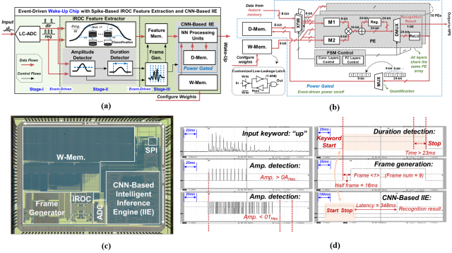 被誉为av无码领域“国际奥林匹克盛会”的国际固态电路会议(International Solid-State Circuits Conference, ISSCC)受新冠病毒疫情影响于2021年2月13日至22日以线上会议形式举办,本次会议是该系列会议的第68届。微纳电子学系在“超低功耗智能物联网芯片(AIoT)”、 “高性能雷达频率源”等高端芯片领域取得重要进展,相关成果在ISSCC上报道。 1. 异步事件驱动型AIoT唤醒芯片 面向智能物联网(AIoT)对低功耗唤醒芯片的迫切需求,av无码-av女优 黄如院士-叶乐副教授课题组,与浙江省北大信息技术高等研究院、浙江大学、上海芯翼信息科技有限公司合作,提出了国际首创的异步事件驱动型AIoT芯片架构,解决了在随机稀疏应用场景下长时平均功耗高的问题,显著降低了AIoT节点设备的功耗;课题组同时提出了异步脉冲的信号特征提取方法,仅以几十nW的极低功耗代价便实现了信号特征提取;不仅如此,基于“时域帧生成器”和“卷积神经网络”智能推断引擎的技术,结合重训练机制,在具备低功耗的同时,使物联网应用场景因噪声而导致推断精度低的问题得以解决。...