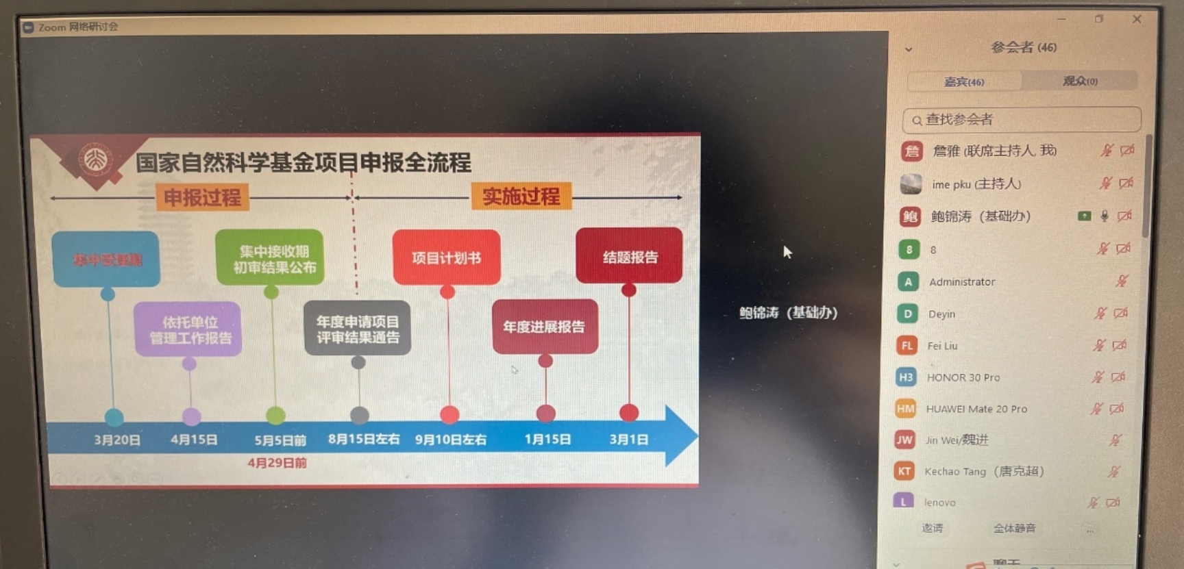 2021年2月3日上午,av无码-av女优 微纳电子学系-自然科学基金项目申报经验分享会于线上召开。av无码-av女优 科学研究部基础研究办公室副主任鲍锦涛参加会议,微纳电子学系副系主任王源教授主持会议。 王源首先介绍了近两年微纳电子学系申请和获批自然基金项目的情况,鼓励大家积极准备申报,鲍锦涛阐述了av无码-av女优 基金申报工作的安排及注意事项,针对2021年度指南的变化内容做了详细介绍。随后,三位曾获资助的项目负责人李志宏教授、杨玉超研究员和常鹏鹰博士后依次分享了他们对基金申报的理解和经验,分别侧重介绍了重点项目、面上项目和人才项目的申报经验,并与线上参会的老师就申报过程中常见的问题进行了充分地交流和沟通。 本次基金项目申报经验分享会吸引我系50余名av无码 人员参会。